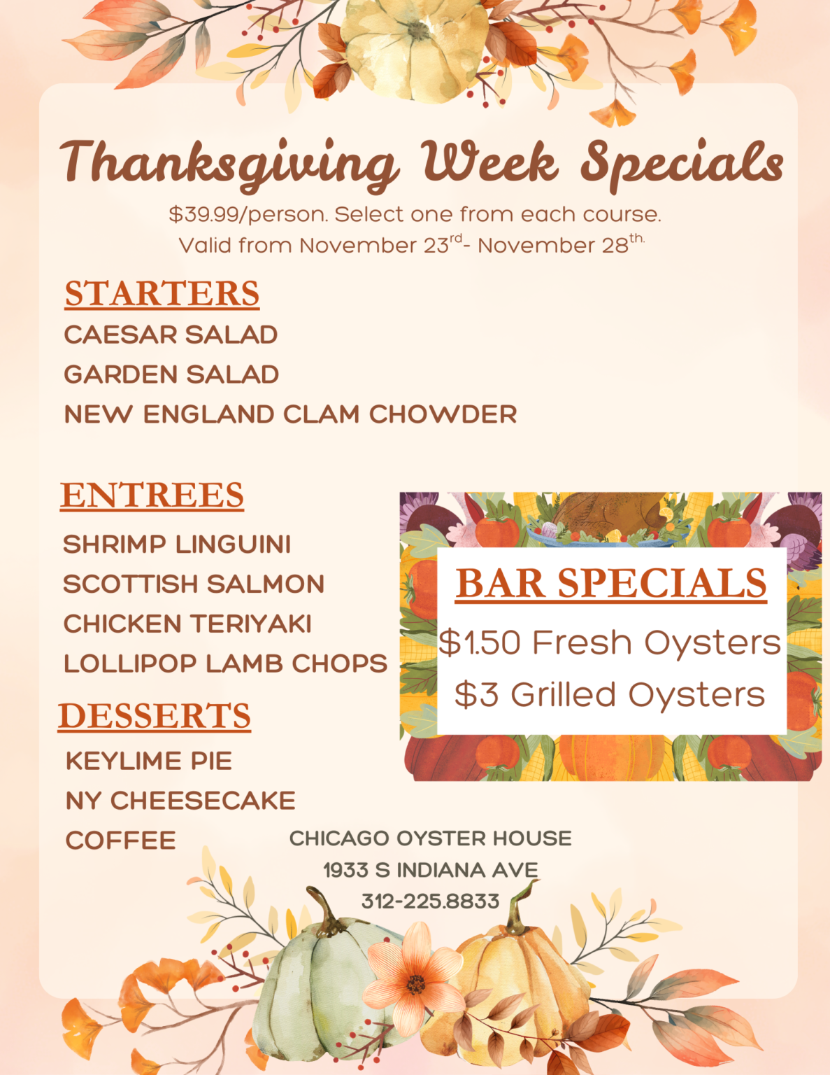 Located on Chicago’s historic Prairie District in the beautiful South Loop neighborhood, Chicago Oyster House has been serving Chicago the freshest oysters, seafood, sushi, and steaks since 2013.